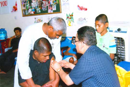 SSOG organized a camp for vaccinating children afflicted with CP (cerebral palsy) and MR (mental retardation). The vaccination is administered in three doses . SSOG organized the first camp on 14.05.2008 and the second dose was given to the same children on 21.06.2008. The camp was organized at Deepashram which is home to about 72 such children.