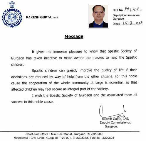 Message from Sh. Rakesh Gupta, IAS - Deputy Commissioner, Gurgaon...